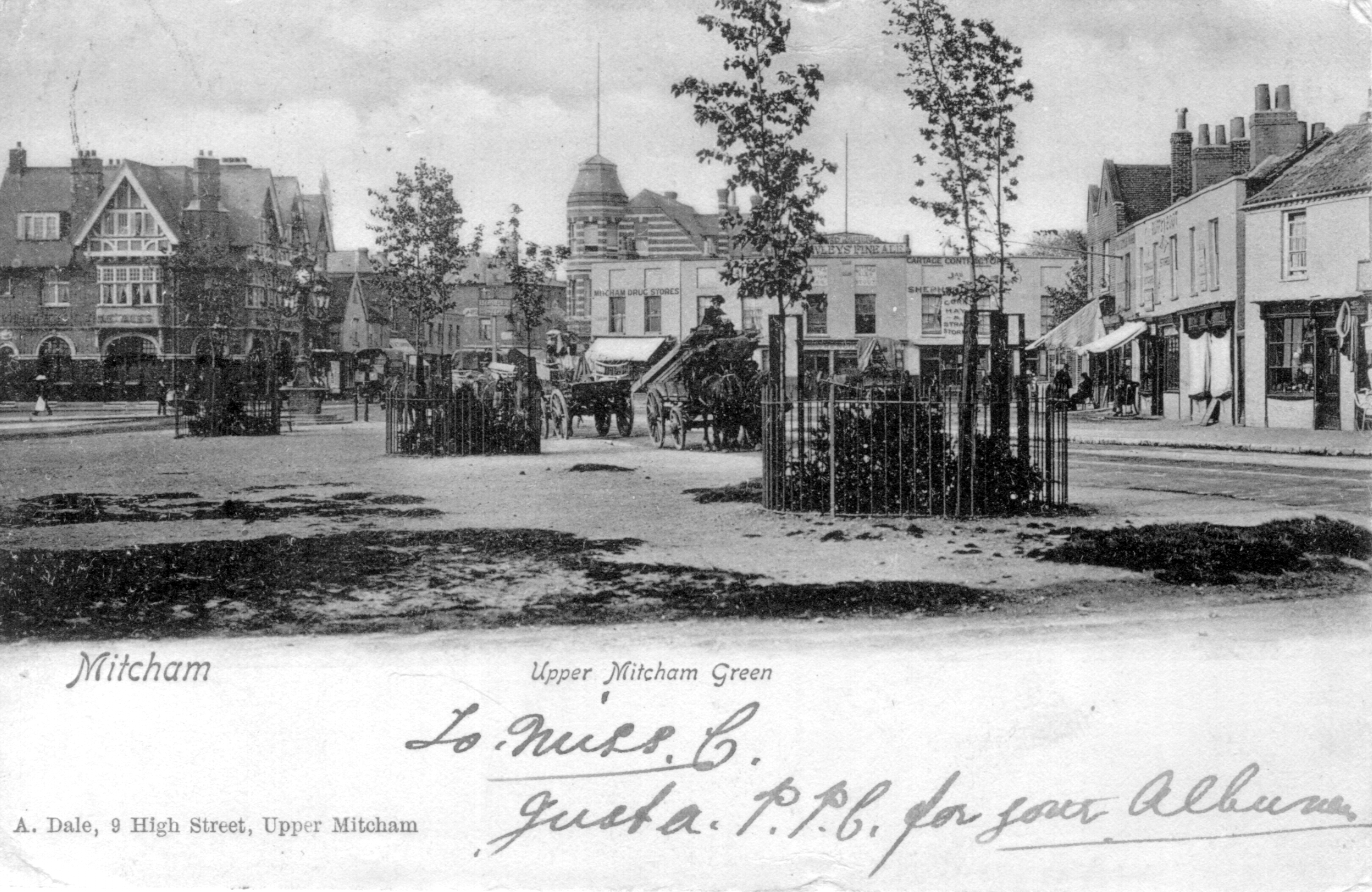 UpperMitchamGreen PC 1904 ENM Published August 4, 2017 at 3240 × 2108 in UpperMitchamGreen PC 1904 ENM. ‘Upper Mitcham Green’. Postcard dated 1904. ‘Upper Mitcham Green’. Postcard dated 1904. A.Dale, 9 High street, Upper Mitcham « Previous Image Next Image »